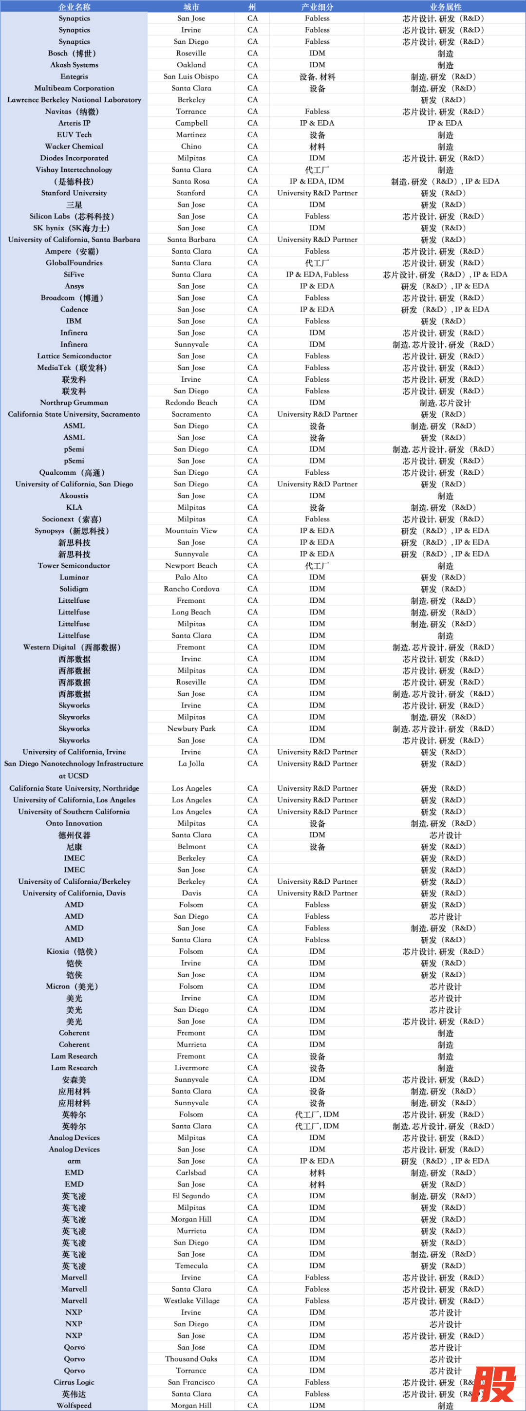 加州半导体生态布局情况
