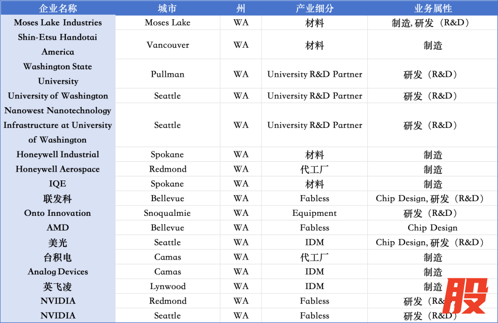 华盛顿州半导体生态布局情况