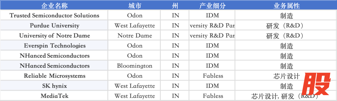 Indiana 拥有 Purdue University 与 Notre Dame 两大研究型大学,配合 onsemi、NHanced Semiconductors、SK hynix 等 IDM 企业,强化特色工艺与封装能力;