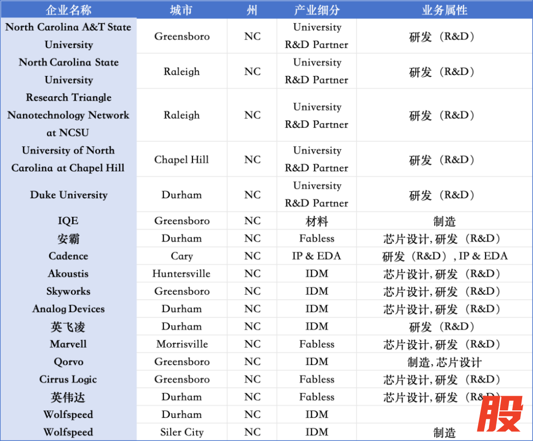 北卡州半导体生态布局情况