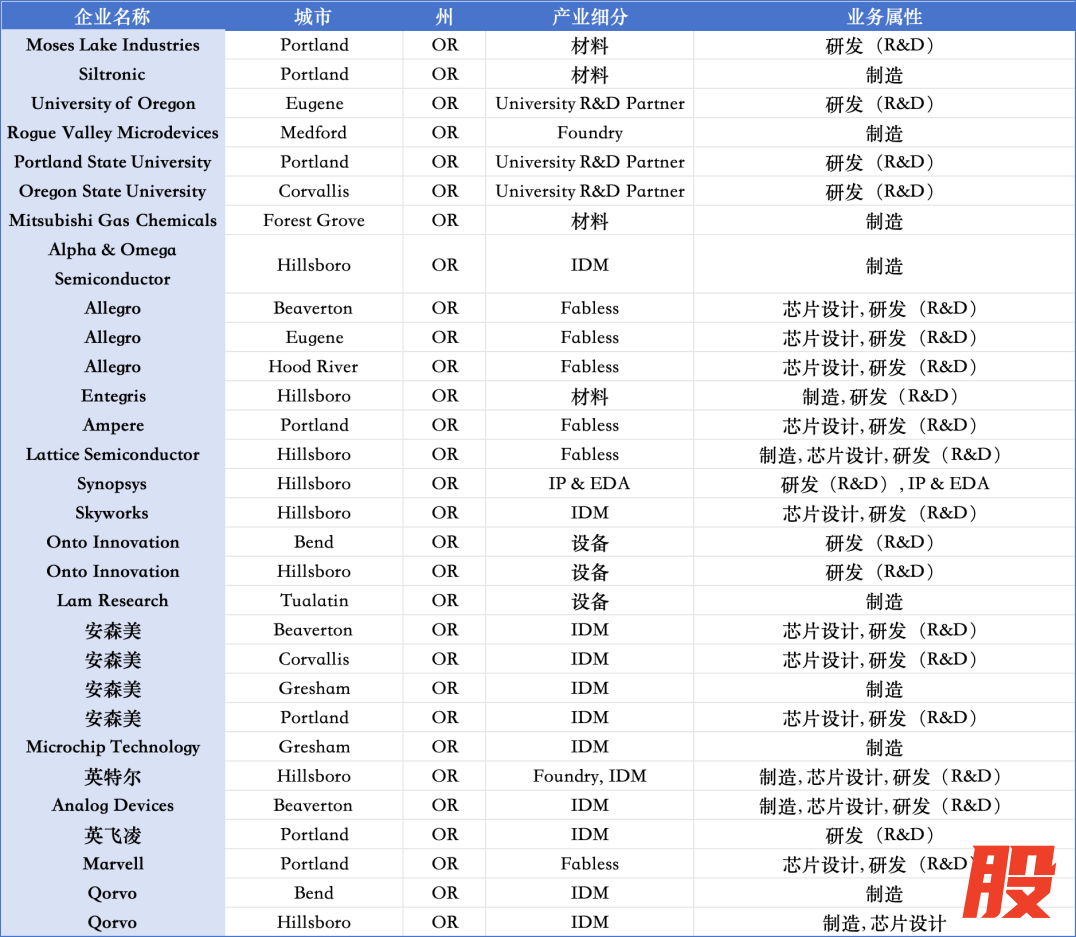 俄勒冈州半导体生态布局情况