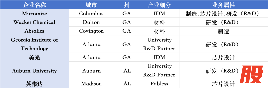 佐治亚州&阿拉巴马州半导体生态布局情况