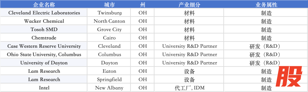 Ohio 以 Intel New Albany 的先进制程与封装项目、Lam Research 的设备制造,以及 Ohio State University 的工艺与器件研究为核心,是美国中部少数兼具“晶圆制造 + 设备 + 大学科研”的区域之一;